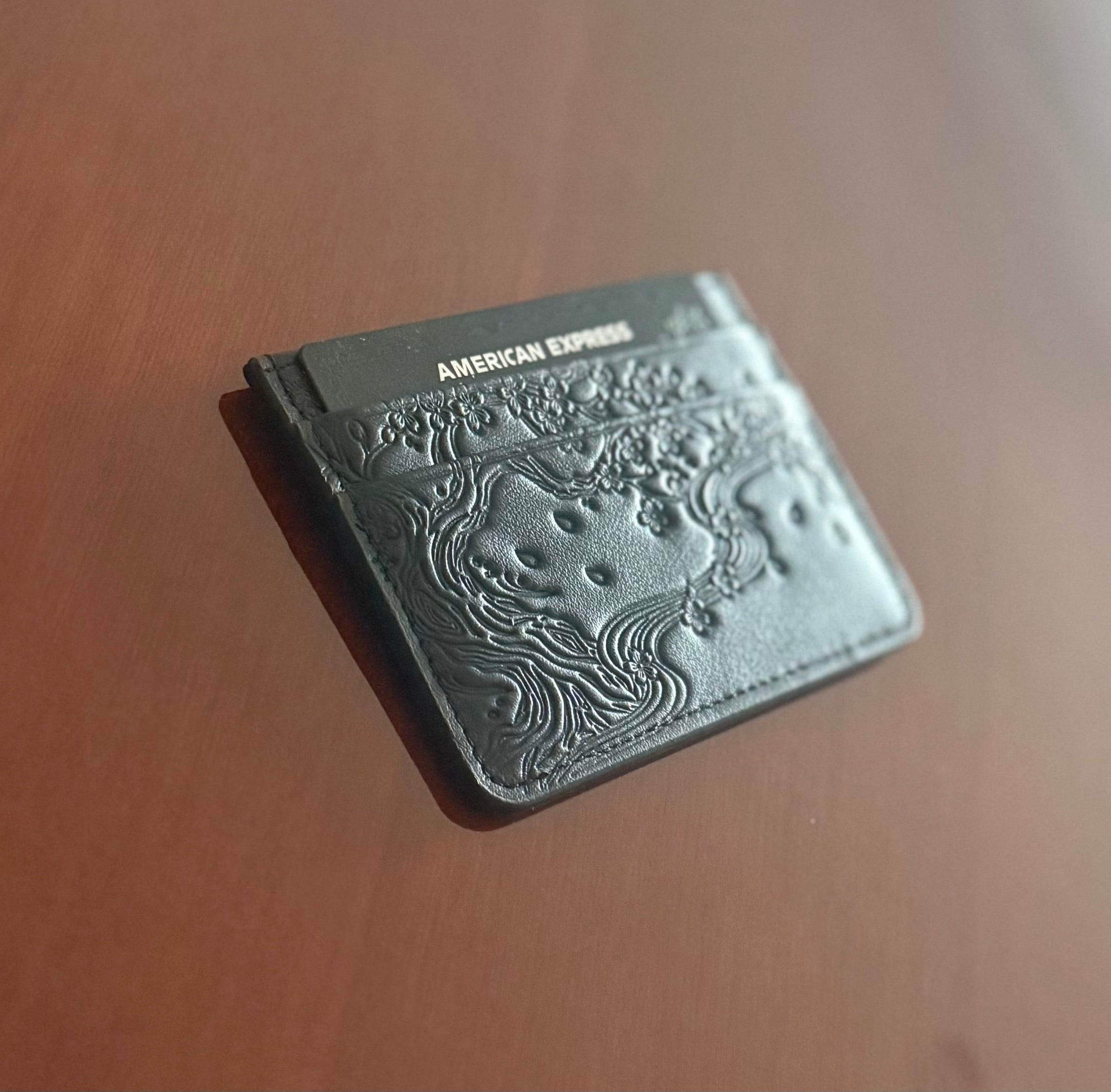 The pattern is driven into the leather; so it doesn’t fade, peel, or flatten over time. It reveals itself through light, not noise.
