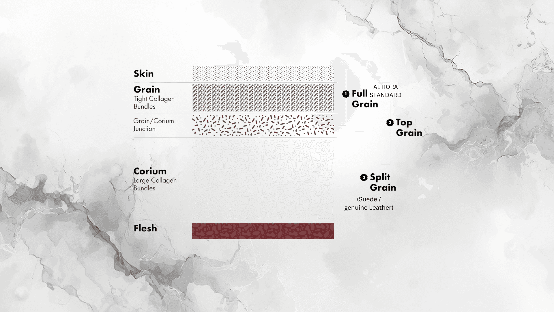 Altiora wallets are crafted exclusively from full-grain leather, the highest grade of leather available. Unlike “genuine leather” or suede, which are produced from lower layers of the hide, full-grain leather preserves the natural surface where the fibers are strongest and most durable. Over time, this leather develops a rich patina, a natural aging process that deepens color, softens texture, and records the life of the owner. It does not wear out. It wears in.